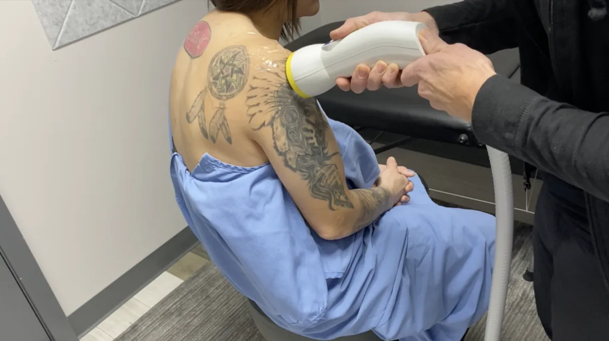 It uses energy waves to penetrate deep into the tissue to promote blood flow, circulation, reduce inflammation and eliminate pain while also stimulating the migration of your body’s stem cells for long-term healing.